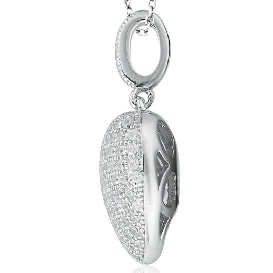 Suzy Levian White Cubic Zirconia Sterling Silver Pave Heart Pendant