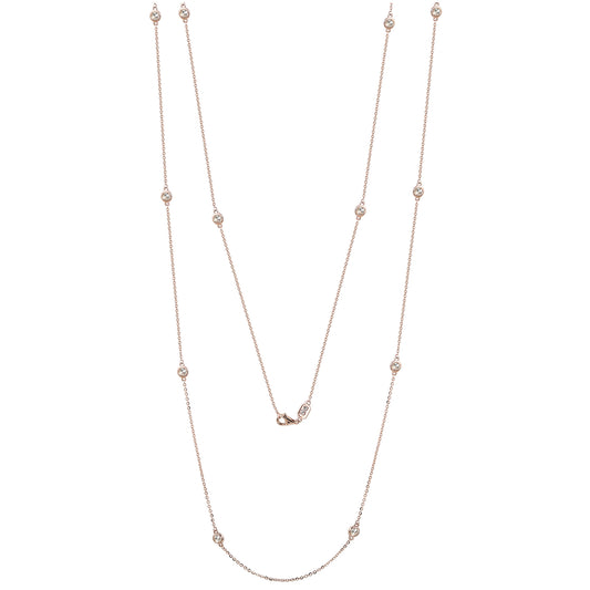 Suzy Levian 14k Rose Gold 1.70 CTTW Bezel Diamond Station Necklace (36 inch)