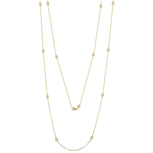 Suzy Levian 14k Yellow Gold 2 CTTW Bezel Diamond Station Necklace (36 inch)