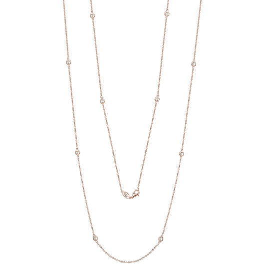 Suzy Levian 14k Rose Gold 2 CTTW Bezel Diamond Station Necklace (36 inch)
