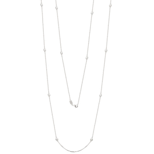 Suzy Levian 14k White Gold 1.70 CTTW Bezel Diamond Station Necklace (36 inch)