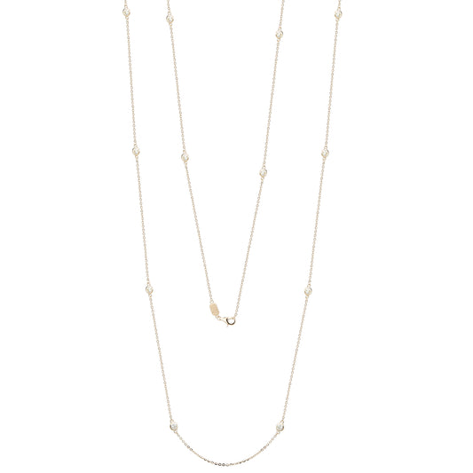 Suzy Levian 14k White Gold 2 CTTW Bezel Diamond Station Necklace (36 inch)