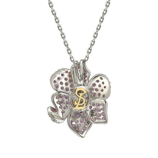 Suzy Levian Pink Sapphire and Diamond Accent in Rose Sterling Silver Abstract Flower Pendant