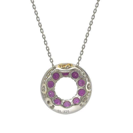 Suzy Levian Sterling Silver Pink and White Sapphire & Diamond Accent Double Circle Eternity Pendant