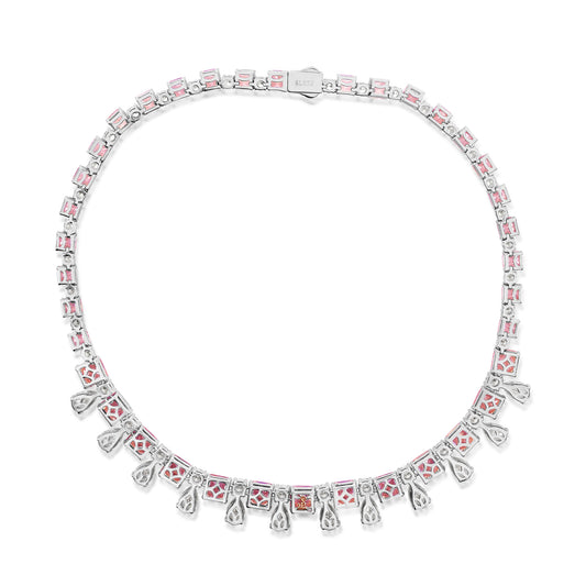 Suzy Levian Sterling Silver Gala Firework Pink & White Multi-Cut Cubic Zirconia Tennis Necklace