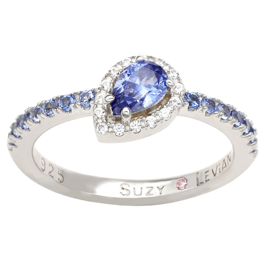 Suzy Levian Sterling Silver Blue & White Sapphire Pear Shape Petite Ring