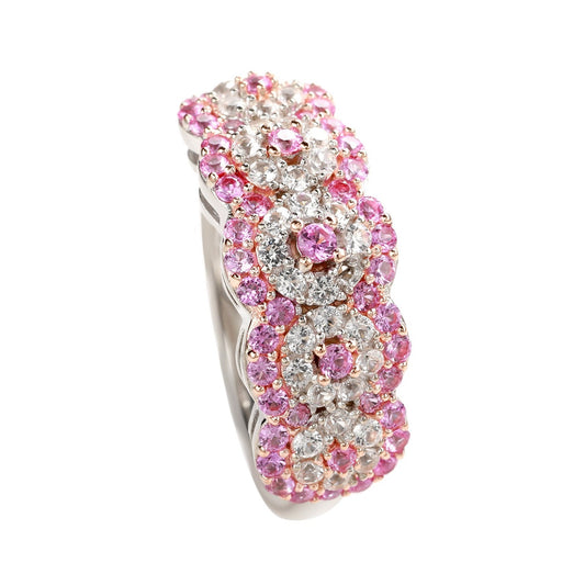Suzy Levian Sterling Silver Pink Sapphire & Diamond Accent Pave Band Ring