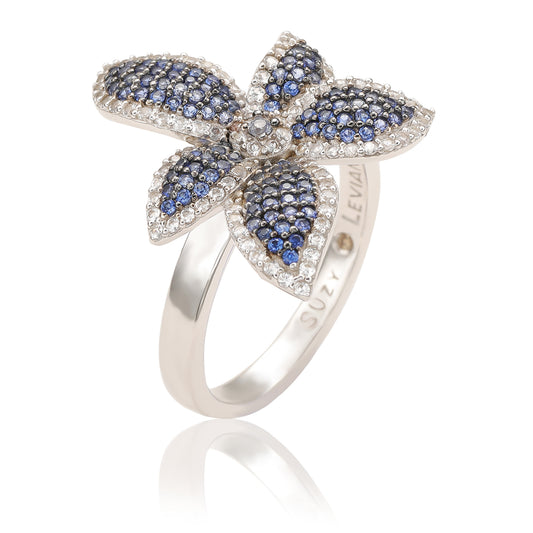 Suzy Levian Sterling Silver Blue Sapphire & White Sapphire Flower Ring