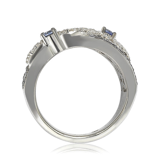 Suzy Levian Crossover Blue and White Sapphire Sterling Silver Ring