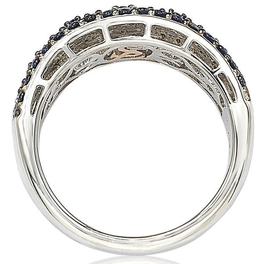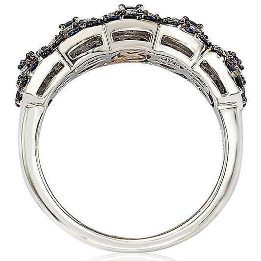 Suzy Levian Rose Sterling Silver Natural Blue Sapphire and Diamond Accent Double Row Band