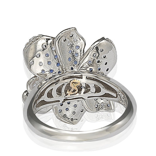 Suzy Levian Sapphire and Diamond in Sterling Silver Flower Petal Ring