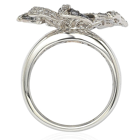 Suzy Levian Sterling Silver Sapphire and 6 Catt Diamond Crossing Ring