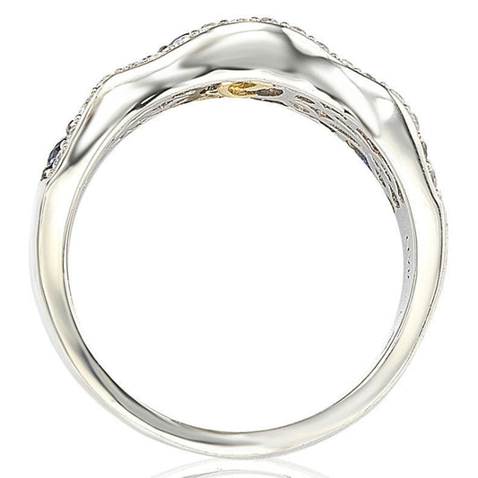 Suzy Levian Sapphire and Diamond Accent in Sterling Silver Wavy Ring