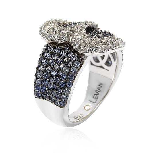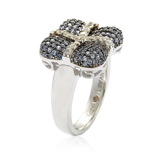 Suzy Levian Sterling Silver Blue & White Sapphire & Diamond Accent Bow Ring