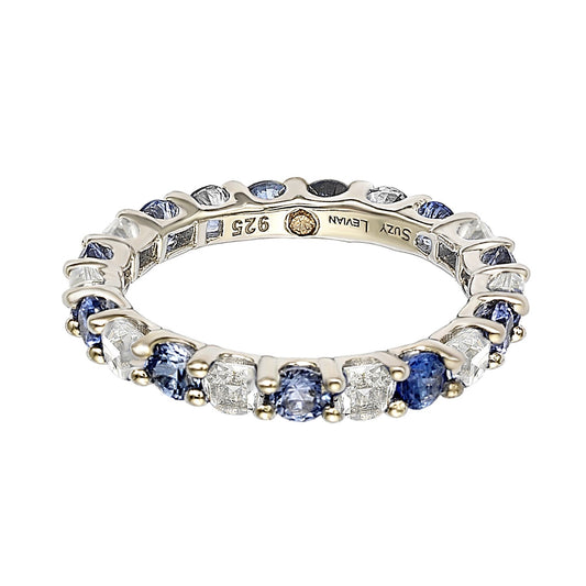 Suzy Levian Sterling Silver Blue & White Sapphire & Diamond Accent Eternity Ring