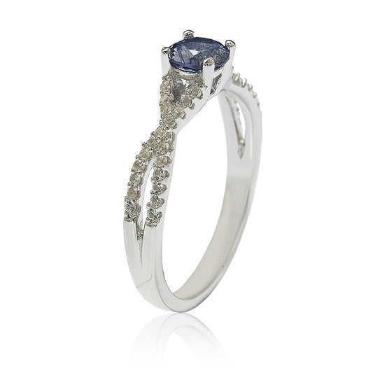 Suzy Levian Sterling Silver Sapphire (0.70cttw) & Diamond Accent Crossover Twist Ring