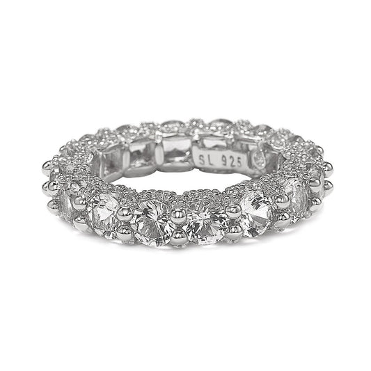 Suzy Levian White Sterling Silver Cubic Zirconia Pave U Shape Setting Eternity Band