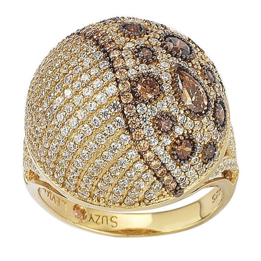 Suzy Levian Golden Sterling Silver Brown Cubic Zirconia Ring