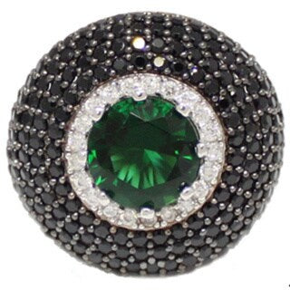 Suzy Levian Sterling Silver Green and Black Cubic Zirconia Micro Pave Ring
