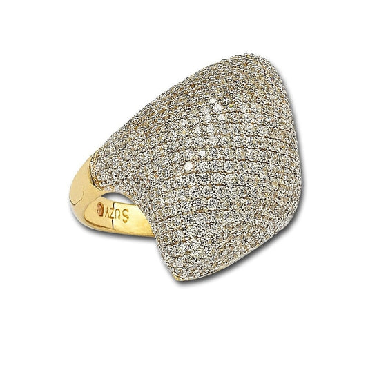 Suzy Levian Golden Sterling Silver Pave Cubic Zirconia Pave Dome Ring
