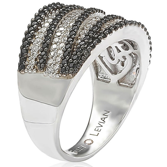 Suzy Levian Sterling Silver Pave White & Black Cubic Zirconia Ring