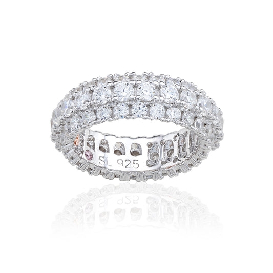 Suzy Levian Sterling Silver White Cubic Zirconia 3 Row Eternity Band
