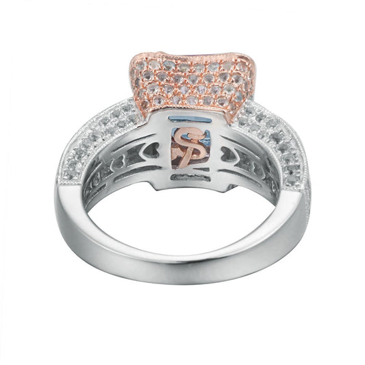 Suzy Levian Two-Tone Sterling Silver 5.57 cttw Cushion Cut Purple Amethyst Ring