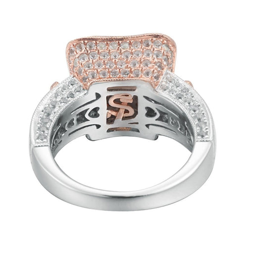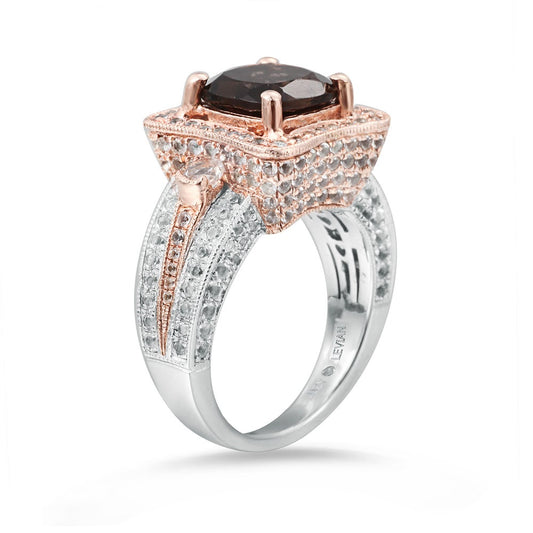 Suzy Levian Two-Tone Sterling Silver 5.48 cttw Cushion cut Smoky Quartz Ring - Brown