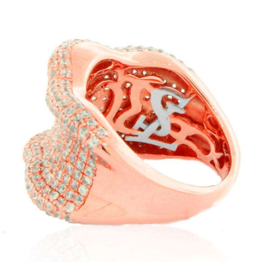 Suzy Levian Cubic Zirconia Rose plated Sterling Silver Wavy Curved Ring