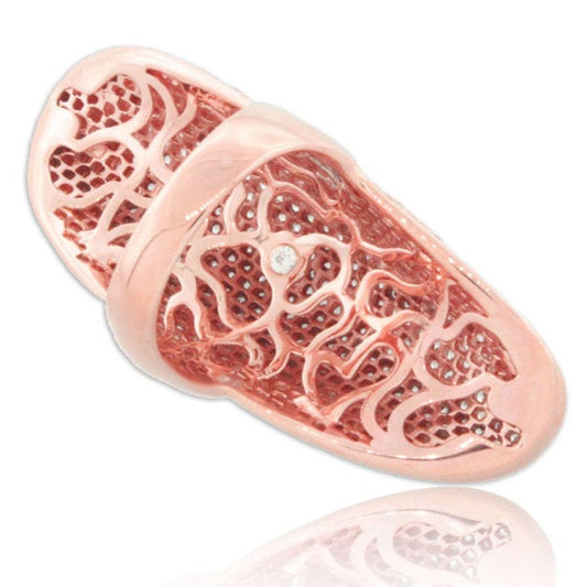 Suzy Levian Cubic Zirconia Rose Sterling Silver Full Finger Knuckle Ring