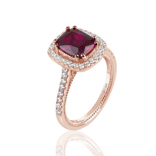 Suzy Levian Rose Sterling Silver Created Ruby Round Cut Engagement Ring