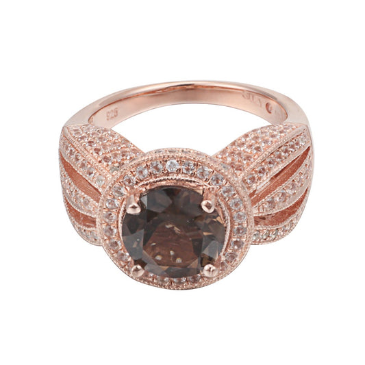 Suzy Levian Sterling Silver 4.5 ctw Smoky Quartz Ring