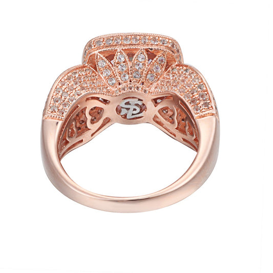 Suzy Levian Cubic Zirconia Rose Sterling Silver Pave Medallion Ring - Pink