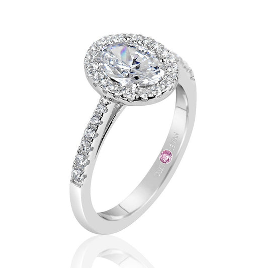 Suzy Levian Sterling Silver Oval Cut White Cubic Zirconia Solitaire Engagement Ring