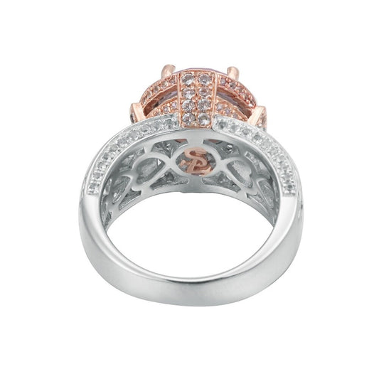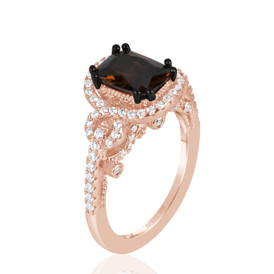 Suzy Levian Rose Sterling Silver Asscher Cut Brown and White Cubic Zirconia Engagement Ring