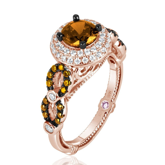 Suzy Levian Bridal Sterling Silver Brown and White Cubic Zirconia Engagement Ring