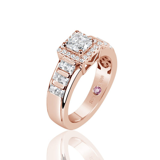 Suzy Levian Rose Plated Sterling Silver White Cubic Zirconia French Channel Set Engagement Ring