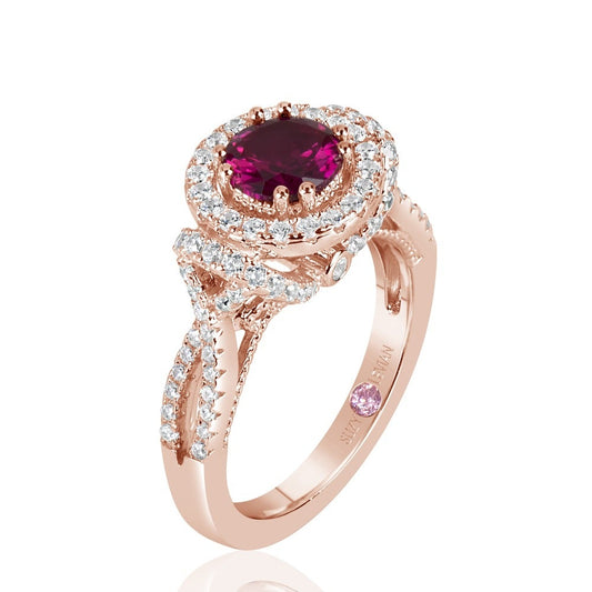 Suzy Levian Rose Sterling Silver Created Ruby and White Cubic Zirconia Engagement Ring