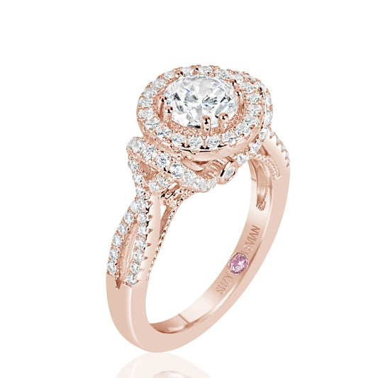 Suzy Levian Rose Sterling Silver White Cubic Zirconia Engagement Ring