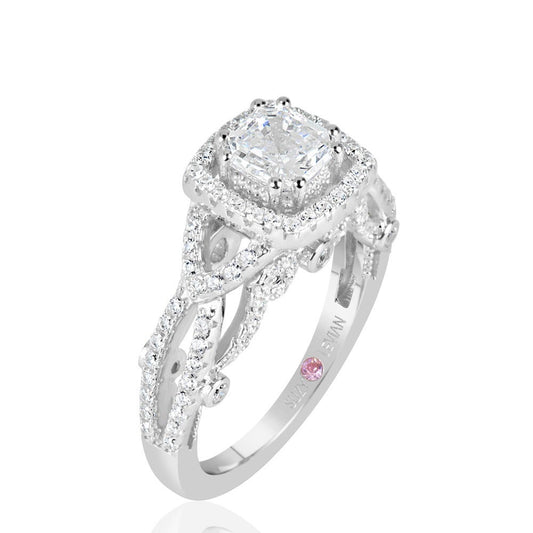 Suzy Levian Sterling Silver Asscher Cut White Cubic Zirconia Engagement Ring