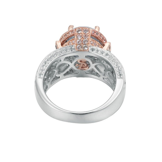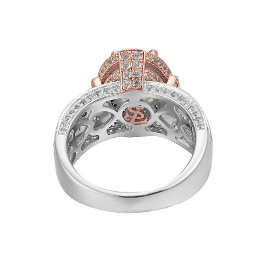 Suzy Levian Rose Sterling Silver Brown and White Cubic Zirconia Engagement Ring
