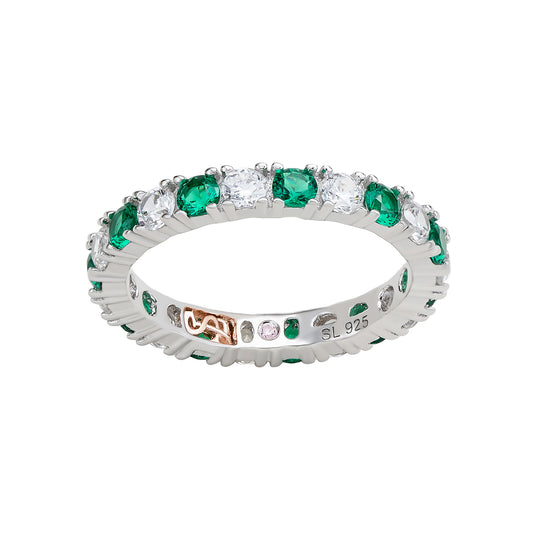 Suzy Levian Sterling Silver Cubic Zirconia Green Emerald Alternating Eternity Band
