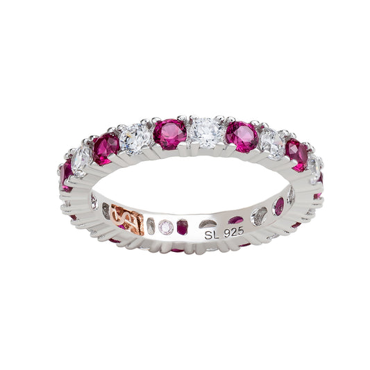 Suzy Levian Sterling Silver Cubic Zirconia Ruby Red Alternating Eternity Band