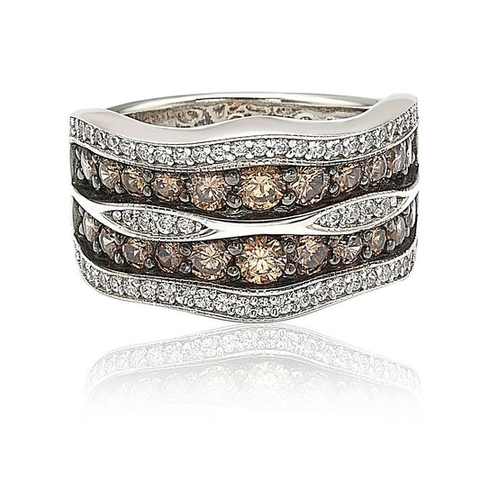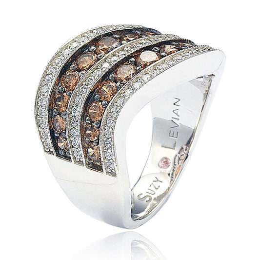 Suzy Levian Brown and White Cubic Zirconia Sterling Silver Wavy Ring