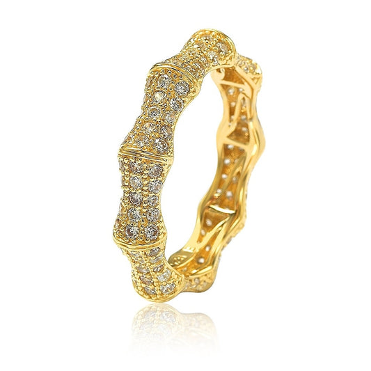 Suzy Levian Golden Sterling Silver Cubic Zirconia Bamboo Eternity Band