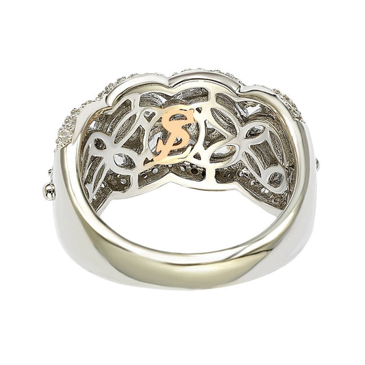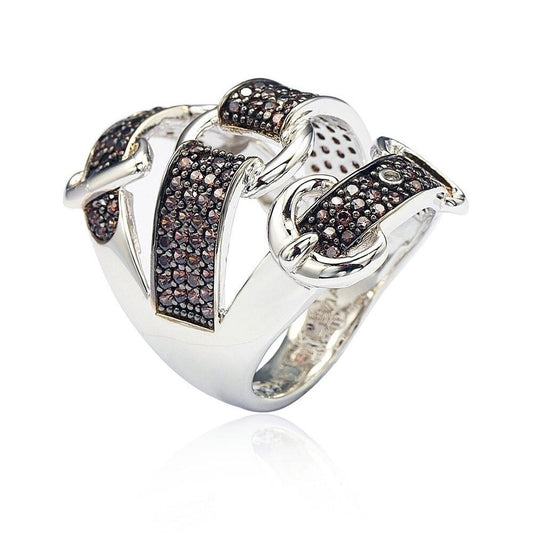 Suzy Levian Sterling Silver Cubic Zirconia Brown and White Buckle Ring