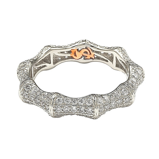 Suzy Levian Rosed Sterling Silver Cubic Zirconia Bamboo Eternity Band