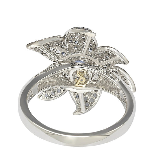 Suzy Levian Sterling Silver Sapphire and Diamond Accent Exotic Flower Ring