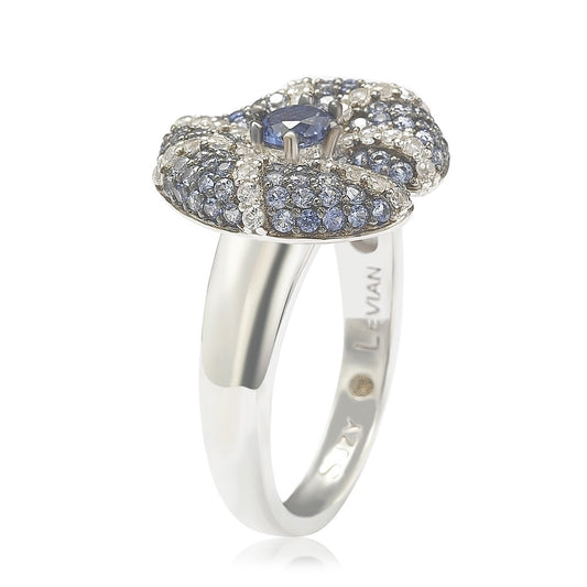 Suzy Levian Sterling Silver Sapphire & Diamond Abstract Flower Ring