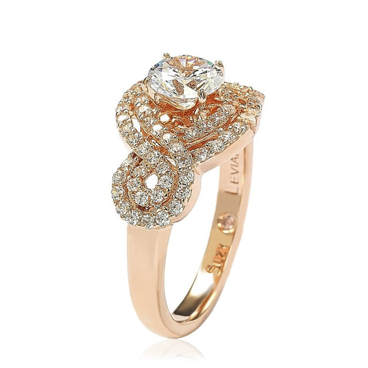 Suzy Levian Rose Sterling Silver Round-Cut White Cubic Zirconia Engagement Ring